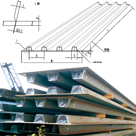隨著大型鋼結(jié)構(gòu)橋梁工程的日益增多,橋面U肋板單元的生產(chǎn)制備因其批量大、工期緊、成型及焊接質(zhì)量要求高,實(shí)現(xiàn)自動(dòng)化生產(chǎn)的必要性越發(fā)顯現(xiàn)。我司在為山海關(guān)橋梁廠、武船重工、上海振華港機(jī)、中泰橋梁等國(guó)內(nèi)多家橋梁生產(chǎn)廠家提供了各類橋面板單元生產(chǎn)設(shè)備。橋面板單元結(jié)構(gòu)如下圖:
